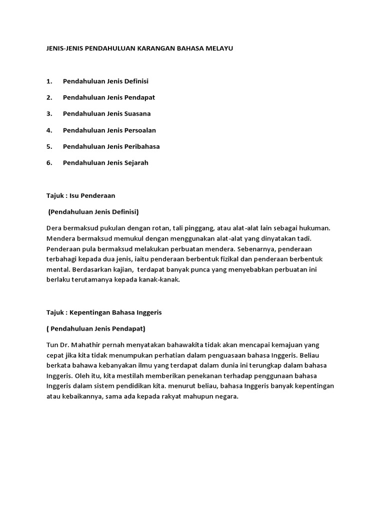 Jenis Pendahuluan Karangan Pdf