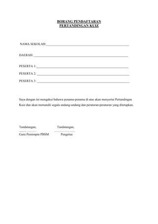 Borang Pendaftaran Individu Permainan Negeri Jantina Kumpulan Umur R01 Nama Pemain Alamat Pemain Alamat Rumah